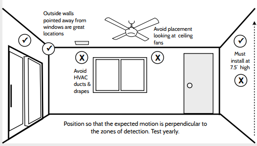 Aim the sensor at windows, fireplaces, air conditioners, area heaters, forced air heating vents or drapes.